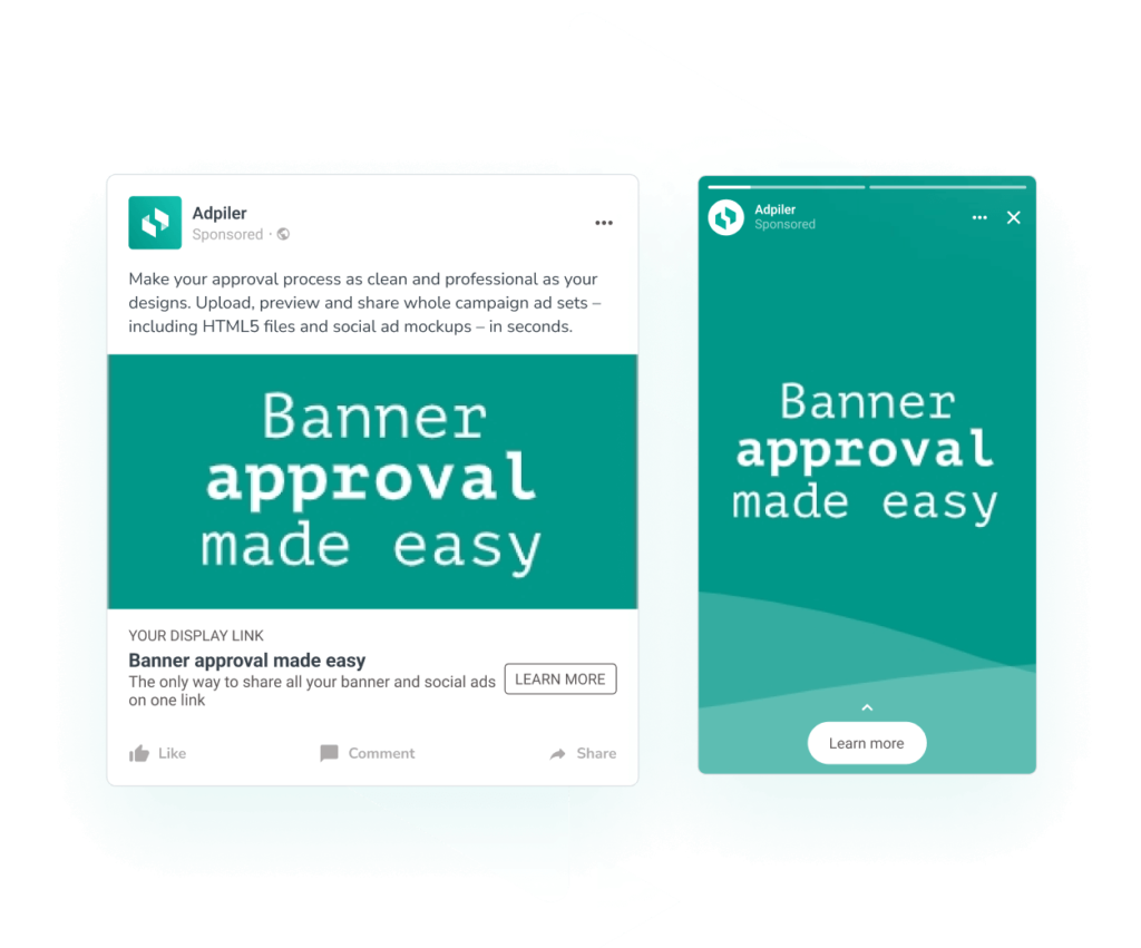 Experience the simplicity and efficiency of Adpiler with our free tool. Create and share social media mockups in seconds. Discover a hassle-free way to collaborate and get feedback on your mockups – all at no cost.