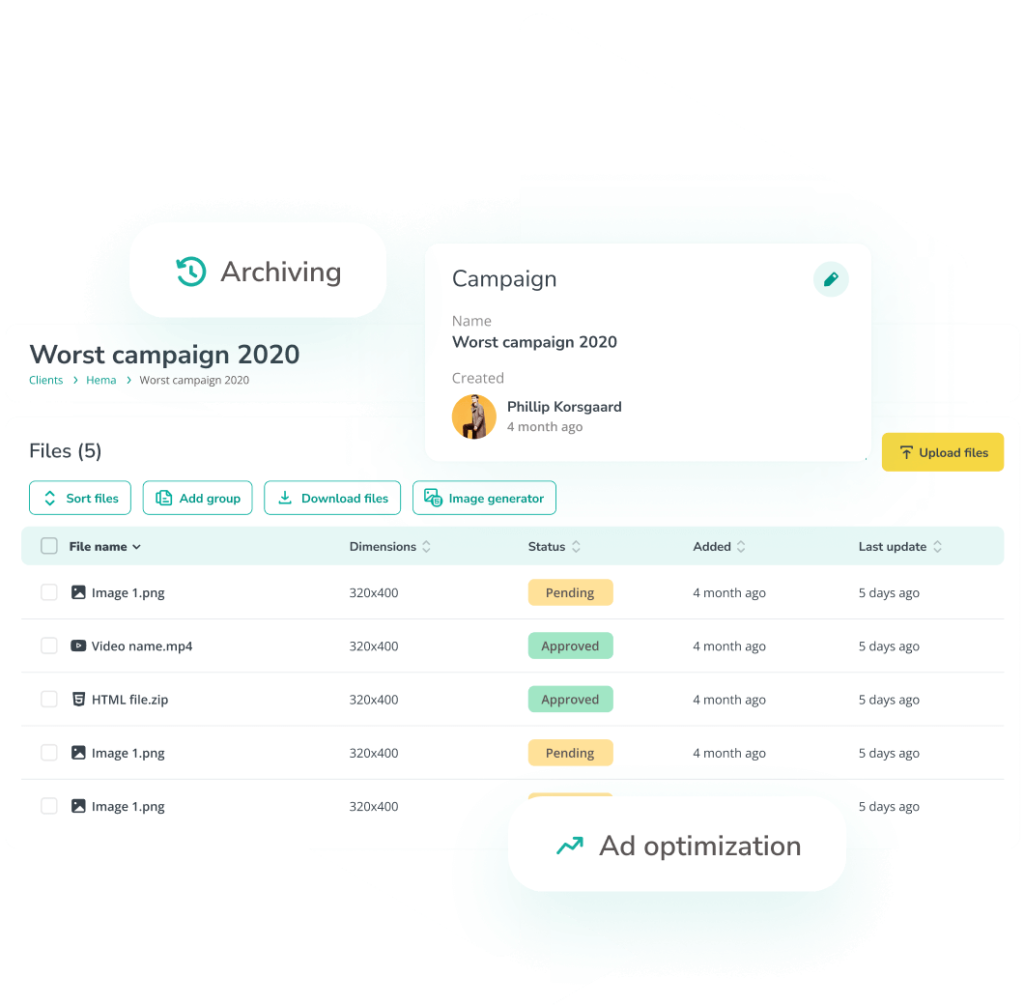 Streamline your client and campaign management efficiently on one platform. Effortlessly organize, share, and archive all your campaign materials, ensuring everything is at your fingertips.