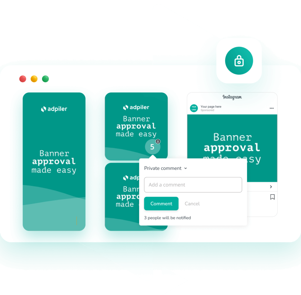 Great work comes from great collaboration. That’s why, with Adpiler, you can let clients comment on designs directly in the app. With Private Comments, your team can now make comments that clients can’t access.